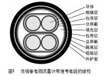 在石油化工、冶金、食品飲料、制藥、造紙、染料等眾多領(lǐng)域,通常采用污水處理流量計(jì)對(duì)流動(dòng)的各種混濁、懸浮液體介質(zhì)(水煤漿、泥漿污水、水泥混凝土漿、紙漿、金屬流體等)的流量進(jìn)行測(cè)量。污水處理流量計(jì)用信號(hào)電纜主要用于將污水處理流量計(jì)的實(shí)際測(cè)量結(jié)果信號(hào)傳輸至顯示系統(tǒng)。隨著污水處理流量計(jì)測(cè)量系統(tǒng)中電路的日趨復(fù)雜和對(duì)信號(hào)傳輸要求的逐步提高,傳統(tǒng)污水處理流量計(jì)用信號(hào)電纜的性能已無(wú)法滿(mǎn)足使用要求,因此本公司開(kāi)展了一種新型低噪音污水處理流量計(jì)用信號(hào)電纜的研制。