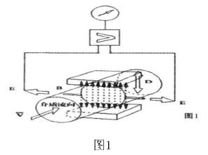 當導電流體經(jīng)傳感器通道時,導電流體流向垂直于磁力線方向,流體流動時切割磁力線,在導電流體中有感應電勢E產(chǎn)生,感應電勢與流速之間的關(guān)系式為:E=KBvD