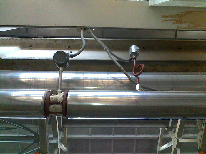 4、管道采取減振動(dòng)措施。傳感器盡量避免安裝在振動(dòng)較強(qiáng)的管道上,特別是橫向振動(dòng)。若不得已要安裝時(shí),必須采取減振措施,在傳感器的上下游2D處分別設(shè)置管道緊固裝置,并加防振墊。