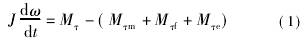 式(1)中通常電磁反作用力矩Mτe比較小,可以忽略。正常工作條件下,可認為管道內(nèi)流量不**間變化,即葉輪以穩(wěn)定的角速度旋轉(zhuǎn)。即存在