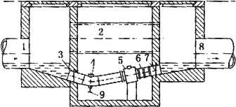 由于大口徑管道在多數(shù)場(chǎng)合下是埋在地下的,因此大口徑傳感器在安裝前應(yīng)做好水泥地坑。圖6-19所示是在給排水系統(tǒng)中常見(jiàn)的安裝形式。水泥地坑應(yīng)有足夠的活動(dòng)空間,側(cè)壁埋有敷設(shè)電纜的鋼管,上有蓋板防止雨淋,下有泄水管以免坑內(nèi)積水而使傳感器侵水。為了拆裝方便,傳感器應(yīng)放在墊腳上,且在下游側(cè)裝有活絡(luò)的伸縮管。圖6-20是測(cè)量鹽水流量計(jì)在地下水泥管污水排放系統(tǒng)中的安裝實(shí)例。