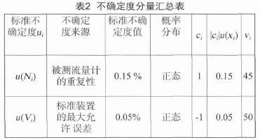 由于廠家給出該氣體流量標(biāo)準(zhǔn)裝置的擴展不確定度U=0.1%;k=2。