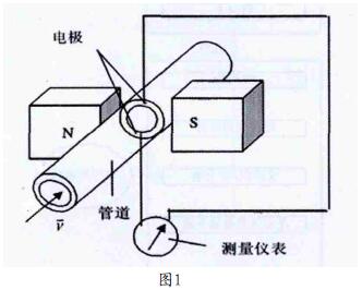 濃硝酸流量計(jì)的設(shè)計(jì)是根據(jù)法拉*電磁感應(yīng)定律,導(dǎo)管中導(dǎo)電的流體被看作導(dǎo)體,管道的內(nèi)徑可看作道導(dǎo)體的長(zhǎng),原理圖如圖1所示,兩電極裝到與管道的中心軸和磁場(chǎng)方向組成的平面相垂直,拾取液體產(chǎn)生的感應(yīng)電動(dòng)勢(shì)。感應(yīng)電動(dòng)勢(shì)為: