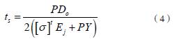 高壓機(jī)油流量計殼體作為主要的承壓零部件,應(yīng)進(jìn)行強(qiáng)度校核計算。并可將其視為鋼管,并根據(jù)標(biāo)準(zhǔn)GB50316 與GB150 中相關(guān)規(guī)定,計算壁厚ts 計算公式: