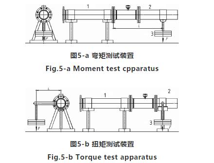 對于高壓機(jī)油流量計來說,還應(yīng)當(dāng)詳細(xì)說明流量計所需求的彎曲與扭力力矩的保護(hù)水平。此數(shù)據(jù)是通過試驗(yàn)直接獲得,彎矩測試裝置如圖5-a 所示,直管段1 連接氣體流量標(biāo)準(zhǔn)裝置,在直管段2 預(yù)先確定的力臂L 位置附加垂直方向的力F 而形成彎矩M;扭矩測試裝置如圖5-b 所示,直管段1 連接氣體流量標(biāo)準(zhǔn)裝置,在直管段2 側(cè)面預(yù)先確定的力臂L 位置附加垂直方向的力F 而形成扭矩T。而彎矩與扭矩均是作用于流量計入口與出口法蘭處。由于此項(xiàng)測試主要針對流量計強(qiáng)度的校核,為了更有說服力、提高可靠性,故將鋁合金殼體的中低壓渦輪流量計DN80-G100用于此次測試。而整個測試過程是將砝碼F 按EN12261 表10 中要求1 倍、2 倍直至做到4 倍(即力矩為3 040 N·m),未發(fā)現(xiàn)流量計殼體有任何異常變化。而測試結(jié)果表明在施加砝碼F 之前、過后得到的指示誤差與施加砝碼F 之前的指示誤差未有明顯變化。