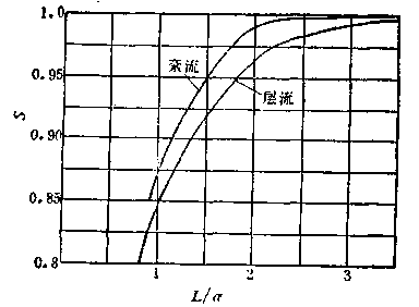 如果測量管是導電的,由于導電管壁的短路作用,磁場邊緣效應就會更加明顯,并導致電極上感生電動勢損失的增加.隨著管壁導電率和壁厚的變化,這種影響也將隨之改變.若以 表示管壁厚度,K表示管壁電導率,d和 仍然分別表示測量管內(nèi)半徑和被測液體電導率,則可用L/d和a= 來表示不同情況下邊緣效應的影響程度,如圖3—36所示.