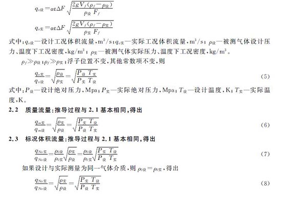 流量計在測量氣體介質(zhì)時,當(dāng)氣體溫度、壓力不穩(wěn)定,造成被測氣體工況密度變化較大時,流量指示誤差增大,此時應(yīng)進(jìn)行溫度壓力補(bǔ)償計算,恢復(fù)儀表測量的準(zhǔn)確性。具體推導(dǎo)、計算如下: