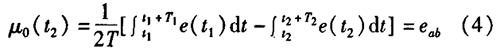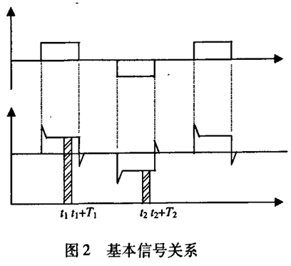 智能濃硫酸電磁流量計(jì)一般都采用工頻交流電源供電,其電源電壓的幅值和頻率的變化都會(huì)給智能濃硫酸電磁流量計(jì)帶來(lái)電源性干擾噪聲。對(duì)電源電壓的幅值變化,因采用多級(jí)集成穩(wěn)壓,一般而言電源電壓的幅值變化對(duì)電磁流量的測(cè)量精度影響不大。當(dāng)電源電壓的頻率波動(dòng)時(shí),雖然其波動(dòng)范圍有限,但對(duì)智能濃硫酸電磁流量計(jì)測(cè)量精度影響較大。為了解決工頻干擾問(wèn)題,實(shí)現(xiàn)對(duì)流體流速感應(yīng)電勢(shì)e柚信號(hào)的準(zhǔn)確測(cè)量,需利用以下基本關(guān)系:①勵(lì)磁周期為工頻周期的整數(shù)倍,即勵(lì)磁頻率為50/nHz(n為偶數(shù));②正負(fù)勵(lì)磁下的同相位采樣。圖2是對(duì)應(yīng)低頻矩形波勵(lì)磁形式下的典型電勢(shì)信號(hào)形式,按上述關(guān)系在一個(gè)勵(lì)磁周期下,若假設(shè)t。和t:點(diǎn)為工頻干擾的等效干擾點(diǎn),且采樣寬度T=T1=T2,則e –ab的基本算式為:,
