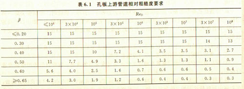從該表可見(jiàn),在雷諾數(shù)ReD不變時(shí),直徑比β越大,粗糙度要求越高.在相同的β條件下,ReD越大,粗糙度要求越高。