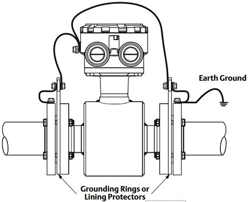 如前圖所示,當(dāng)靠近氫硫酸流量計(jì)的管道不能提供良好的流體電連接時(shí),需要接地環(huán)或接地電極。也就是說,管道內(nèi)襯或由非導(dǎo)電材料制成。