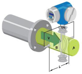 基本上,當(dāng)導(dǎo)電液體流過(guò)磁場(chǎng)時(shí),會(huì)感應(yīng)出電壓。為了測(cè)量該產(chǎn)生的電壓(與流動(dòng)的液體的速度成正比),使用了兩個(gè)彼此相對(duì)安裝的不銹鋼電極。