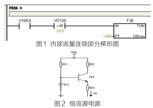 (2)PLC及模塊。PLC及模塊是自動化控制系統(tǒng)主要設(shè)備,且PLC及模塊屬于高集成高精密電子設(shè)備,保持室內(nèi)整潔舒適,可以提高自動化系統(tǒng)運行穩(wěn)定性。PLC及模塊硬件運行可靠,內(nèi)部控制程序是其控制核心軟件,如PLC硬件出現(xiàn)故障或損壞一般直接更換,但原內(nèi)部控制軟件無法上傳,整個控制系統(tǒng)成失控狀態(tài)。所以其內(nèi)部控制程序在調(diào)試驗收合格后應(yīng)及時備份并做好標(biāo)記,為以后修復(fù)PLC故障提供保障。PLC系統(tǒng)的維護(hù)技術(shù)人員需掌握一定基礎(chǔ)PLC控制邏輯原理,對準(zhǔn)確判斷PLC故障點有很大的幫助。例如選礦廠水泵房S7-200系列PLC自動抽水系統(tǒng)出現(xiàn)如下故障 :觸摸屏能控制變頻器啟動水泵抽水,但在短時間內(nèi)會自動停泵,導(dǎo)致無法正常抽水。通過故障現(xiàn)象可初步判斷PLC及模塊硬件設(shè)備正常,主要由于某個變量有問題導(dǎo)致連鎖停機。打開備份PLC控制梯形圖程序進(jìn)行相關(guān)分析,原來是高溫液體流量計瞬時流量數(shù)值做了連鎖,其在一定時間內(nèi)瞬時流量不大于10m 3 /h時,自動停泵,電磁流量模擬量輸出電流值僅為4ma且無變化,確定高溫液體流量計有故障??膳R時應(yīng)急維修,模擬量模塊輸入模擬電流值10ma~20ma之間一固定數(shù)值即可恢復(fù)正常運行。制作簡單恒流源電路代替高溫液體流量計輸出的模擬電流量,實現(xiàn)解決水泵無法正常運行的故障。