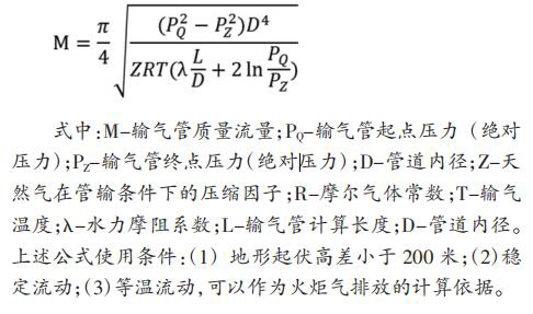 天津 LNG 設置兩座插入式電磁流量計,單臺設計處理量 60t/h, 兩臺火炬并列運行,一用一備。自 LNG 儲罐及 BOG 系統(tǒng)來的超壓 BOG 經 PV 閥后進入火炬氣排放總管,經分液罐沉淀 BOG 中夾雜的液滴后進入火炬燃燒放空。 插入式電磁流量計設置四級排放,具體設置如表 1。 2 火炬氣排放量計算方法根據水平輸氣管流量計算基本公式: