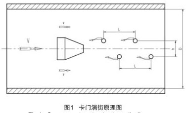 按國際標準化組織 IS07145(在環(huán)形截面封閉管道中的流體流量測定--在截面一點的速度測量法),采用埋入壓電晶體的渦街測速探頭,插入大口徑工業(yè)管道內(nèi),將卡門旋渦頻率轉換為與流量成正比的標準信號:(4 ~ 20)mA DC。