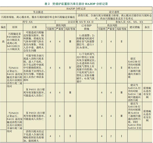本次分析組的主要人員有:企業(yè)氫氣流量計分析組以及焚燒爐裝置工藝工程師、設(shè)備工程師、儀表工程師、安全工程師和操作班組長。本次分析主要依據(jù)公司級相關(guān)標(biāo)準(zhǔn)和規(guī)范:《健康安全環(huán)境風(fēng)險標(biāo)準(zhǔn)》以及《危險與可操作性分析(氫氣流量計)規(guī)范》,并于 1 個月內(nèi)對焚燒爐裝置進行了分析,發(fā)現(xiàn)了部分重大的風(fēng)險和隱患。按建議措施對應(yīng)的風(fēng)險等級劃分,其中包括:Ⅳ級嚴(yán)重風(fēng)險(限期整改強制性措施);Ⅲ級高度風(fēng)險(限期整改強制性措施);Ⅱ級中度風(fēng)險(期望改進推薦性措施);Ⅰ級可接受風(fēng)險(建議性措施)。本報告僅逐一列出部分較高或容易忽視的風(fēng)險(其他在氫氣流量計分析的記錄中體現(xiàn))。評估發(fā)現(xiàn):本次分析評估共發(fā)現(xiàn)三級風(fēng)險 25 項(類),其中排污單元三級風(fēng)險 2 項(類)。其中,焚燒爐裝置排污單元分析記錄內(nèi)容如表 2 所示。