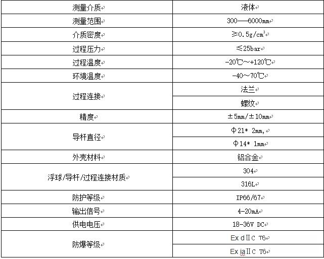 二、遠(yuǎn)傳浮球液位計的參數(shù)