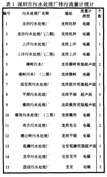 截止目前,深圳市內(nèi)外所有污水處理廠(包括人工濕地、快滲)共計(jì)30余座,重點(diǎn)監(jiān)控的排污流量計(jì)50余臺。統(tǒng)計(jì)數(shù)據(jù)如下表(見表1)