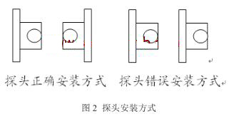 d.探頭安裝時(shí)要注意方向。該廠流量計(jì)一度頻頻歸零,起先找了很多原因,如給流量計(jì)井做防水,更換耦合劑等,但是效果并沒有大的改善。結(jié)果是雖然頻頻更換耦合劑,但二次表中信號強(qiáng)度*好僅能達(dá)到44dB,且信號強(qiáng)度不穩(wěn)定,浮動(dòng)較大,導(dǎo)致流量不夠準(zhǔn)確。有時(shí)甚至涂抹一次耦合劑只能正常顯示數(shù)據(jù)一天時(shí)間。后來發(fā)現(xiàn)一個(gè)探頭在兩根鋼帶內(nèi)側(cè),另一個(gè)探頭在兩根鋼帶外側(cè),而兩個(gè)探頭應(yīng)該同在兩根鋼帶內(nèi)側(cè),如圖2所示。錯(cuò)誤安裝方式的結(jié)果是聲波信號接收效果不好。將安裝方式更改之后,信號強(qiáng)度*好能達(dá)到70dB,并穩(wěn)定在60-70dB之間,從而保證了流量數(shù)據(jù)的準(zhǔn)確性。